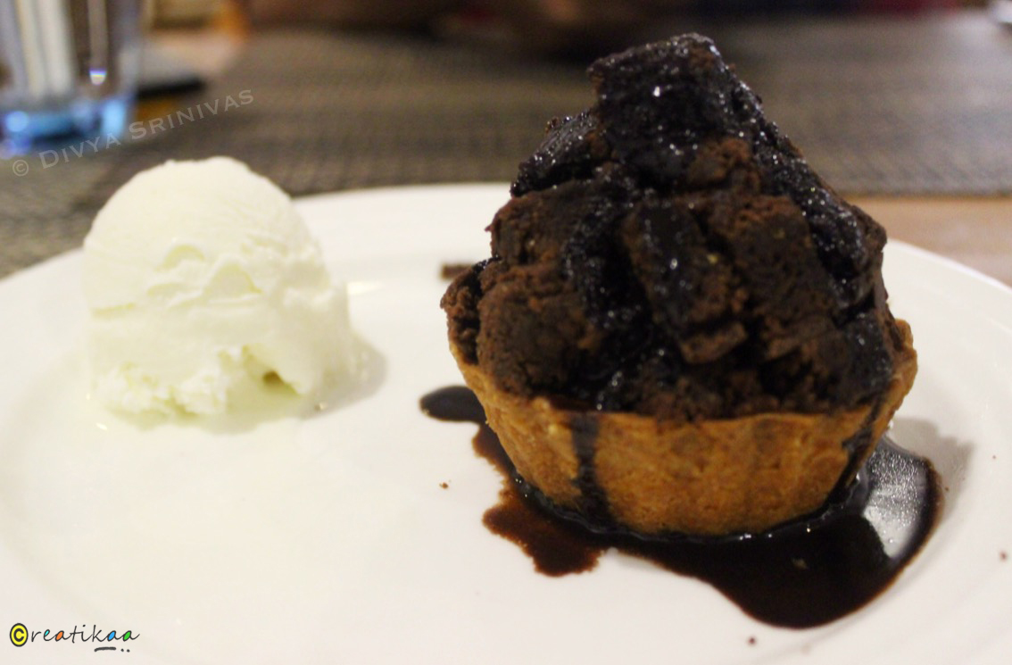 With cheese tickling all through the body, I was awaiting for Tiramisu and Chocolate Tart (Torta Di Stefano with Ice Cream). Surprisingly, the Tart was better than Tiramisu. Tiramisu missed the strong coffee flavor and the tart was yum with flaky base, chunks of brownie and sticky chocolate sauce which was a true delight with Vanilla ice-cream.
